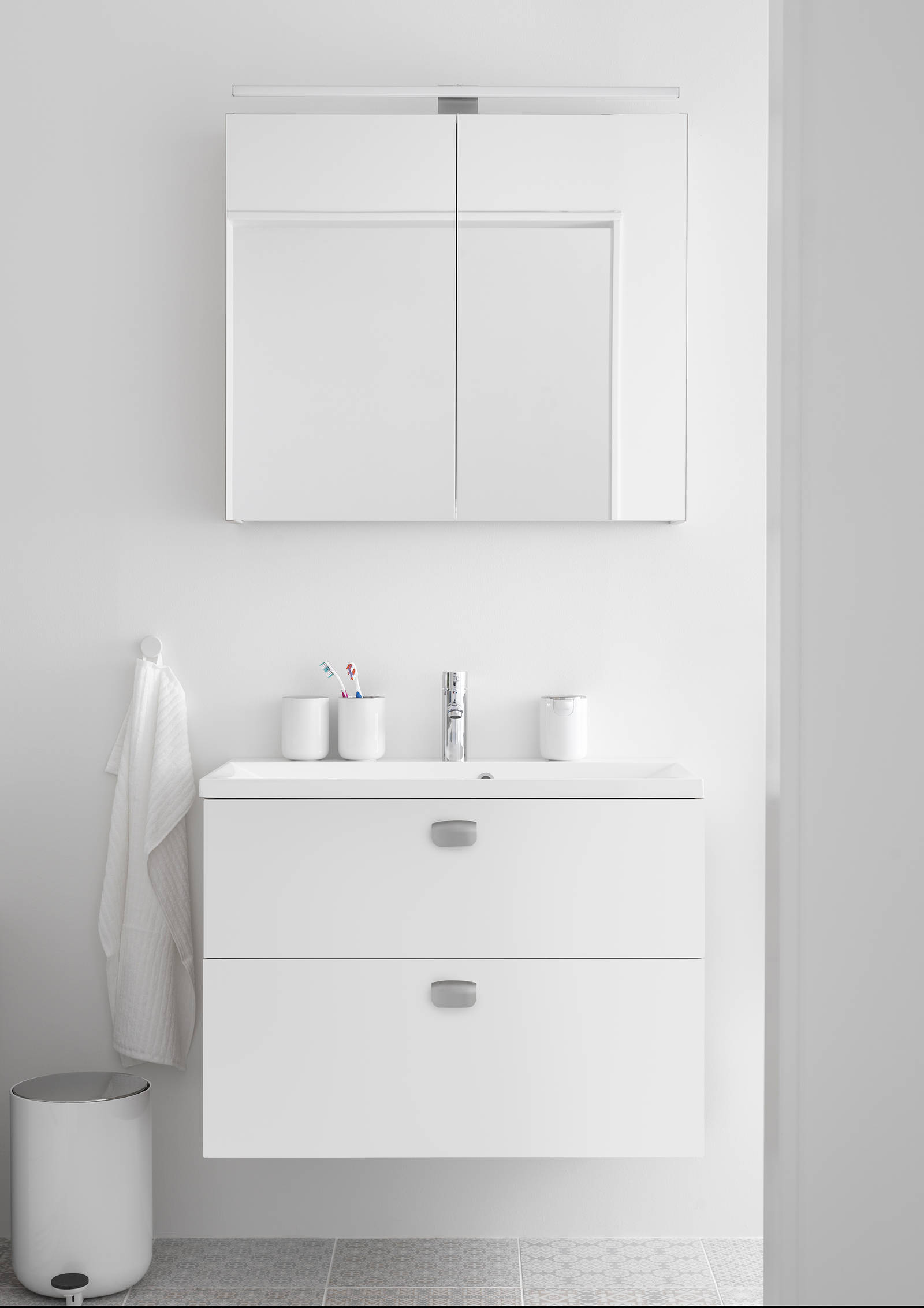 En vit badrumsinredning ger ett tidlöst intryck och gör det enkelt att inreda och variera.