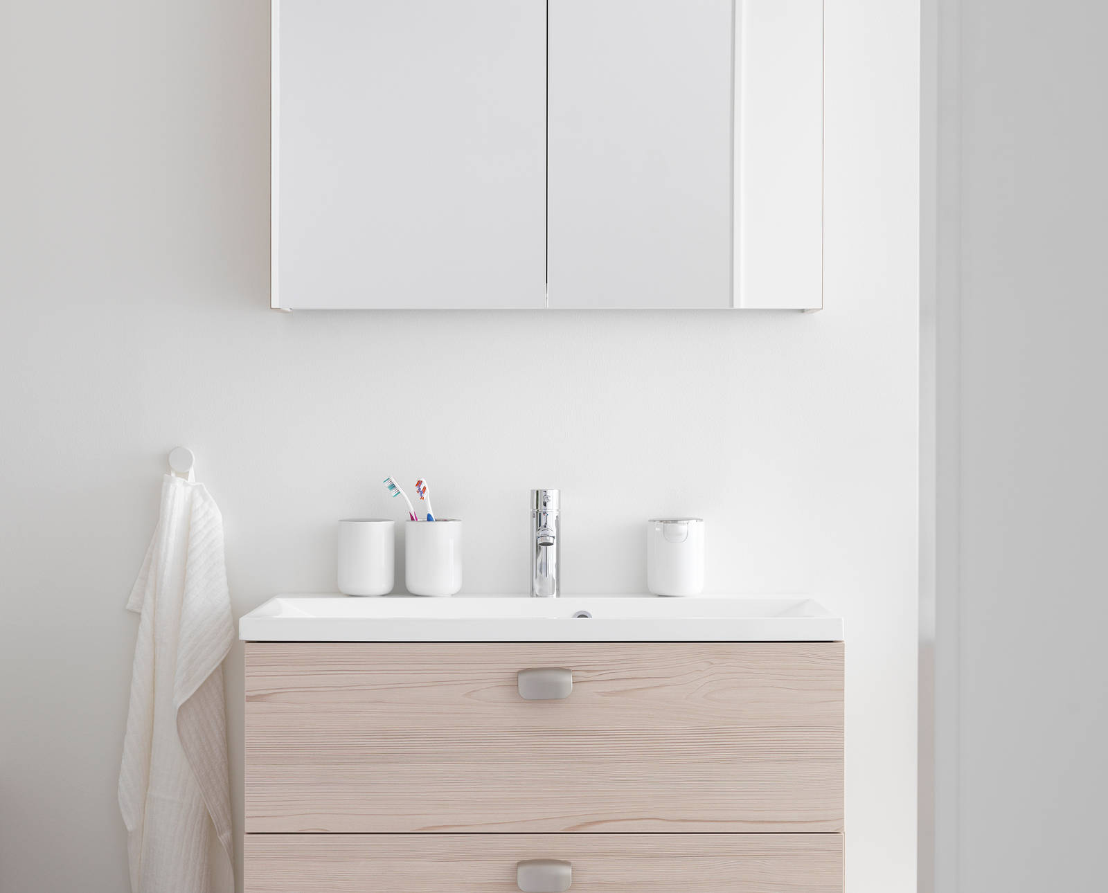 Våra tvättställ i porslin har en klassisk design. Tvättställen bygger 4cm över skåpsstommen.