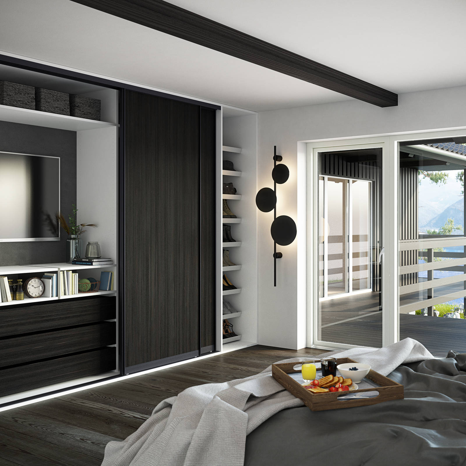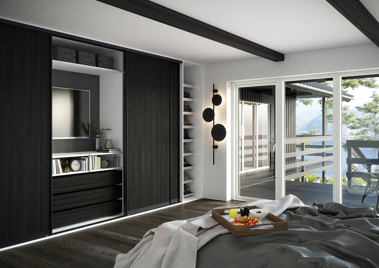 Grinda är en skjutdörrsmodell med många möjligheter. Profilen är 20 mm bred av aluminium, i silver, svart eller vitt. Hjulen är dolda, så Grinda passar utmärkt som snygg rumsavdelare eller som avslut på en walk-in-lösning. Dörrarna får en framträdande roll och blir en stilfull del av din inredning. Kombinera dem med en snygg och funktionell inredning som passar dina behov för en optimal förvaringslösning.