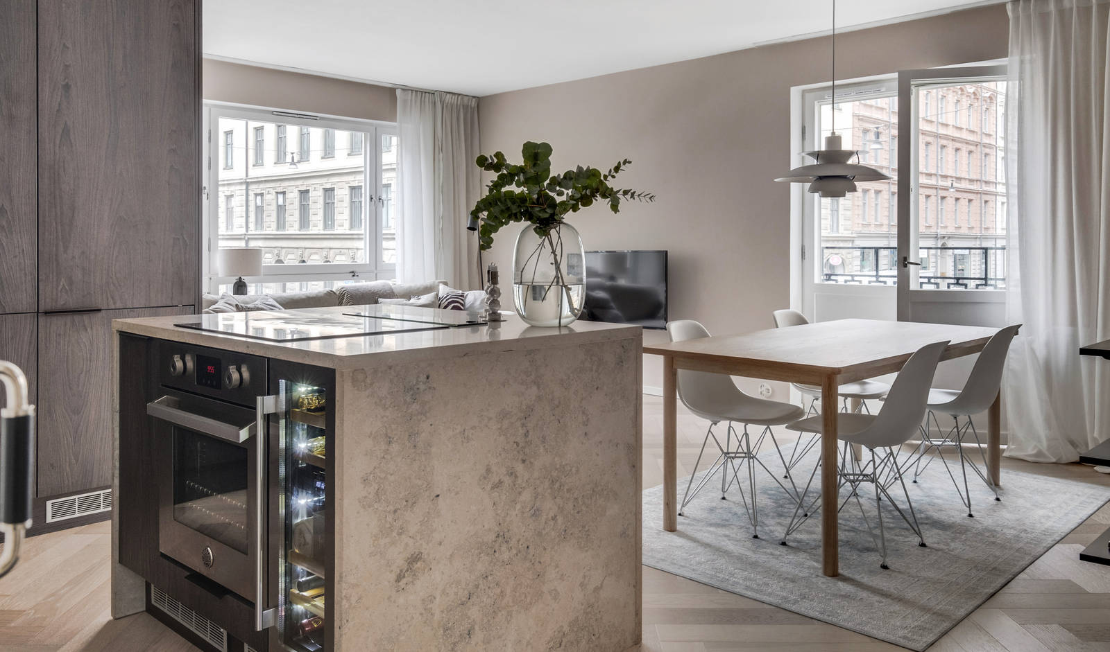 Sarah och Hannes visar oss sitt öppna, stilrena kök