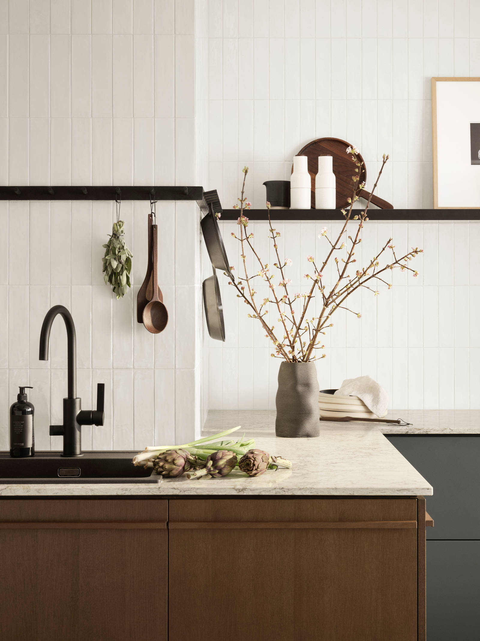 Med naturnära detaljer kan du få ditt kök att blomstra genom väl valda material. Plocka upp toner i både träslag och kulör för att matcha ditt kök och låt detaljerna få ta plats. Skapa ett levande rum med hjälp av strukturer, former och material från naturen såsom en bänkskiva i natursten eller en knopplist i ek.