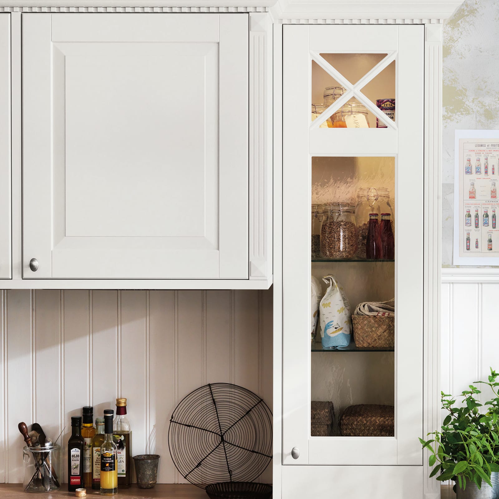 En vacker krysspröjs på en vitrinlucka, en tandad krönlist, bänkskivor i levande trä, en klassisk kran - allt sitter i detaljerna för att du ska få en extra lantlig touch. Om du vill göra en mindre insats i köket kan du byta ut knopparna på dina luckor, byta köksskiva, addera in en vägghylla eller konsol som lyfter fram porslin eller gör dina köksredskap lätta att komma åt.