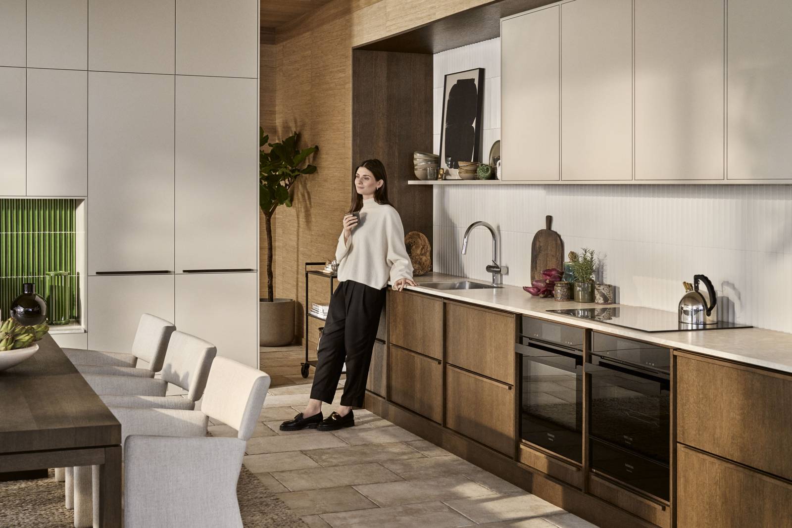 – Jag vill även slå ett slag för en naturlig kombination av trä och färg i köket.