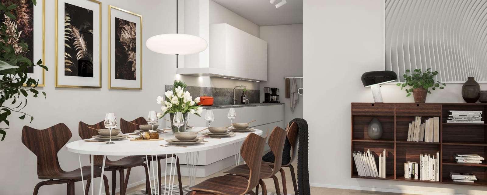 Tack vare de stora ljusinsläppen, den öppna planlösningen och den generösa takhöjden om 2,60 m är lägenheterna luftiga och ljusa. NCC bygger med genomgående hög standard och noga utvalda material. Lägenheterna har stora balkonger och en del lägenheter har även en egen takterrass. Vattenburen golvvärme samt breda vitpigmenterade golv i enstavs ekparkett är genomgående i alla lägenheter.