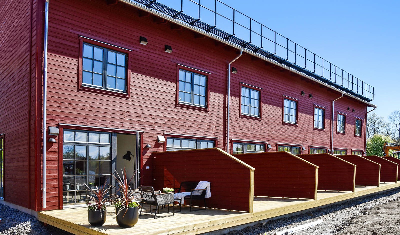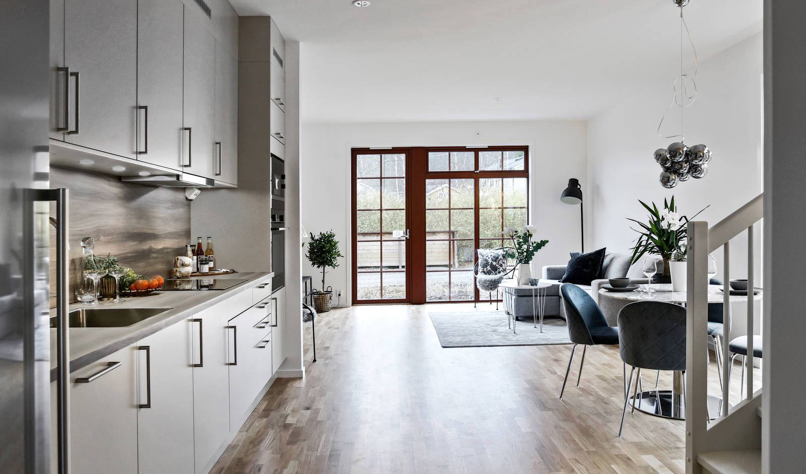 Bostäderna i radhusen är byggda i tre plan. Ljusinfallet på entréplanet är fantastiskt tack vare de 2,4 meter höga fönsterpartierna och fönsterdörrarna åt trädgårdssidans uteplatser. Tack vare detta ljusinsläpp känns radhusen mycket ljusa och rymliga.
