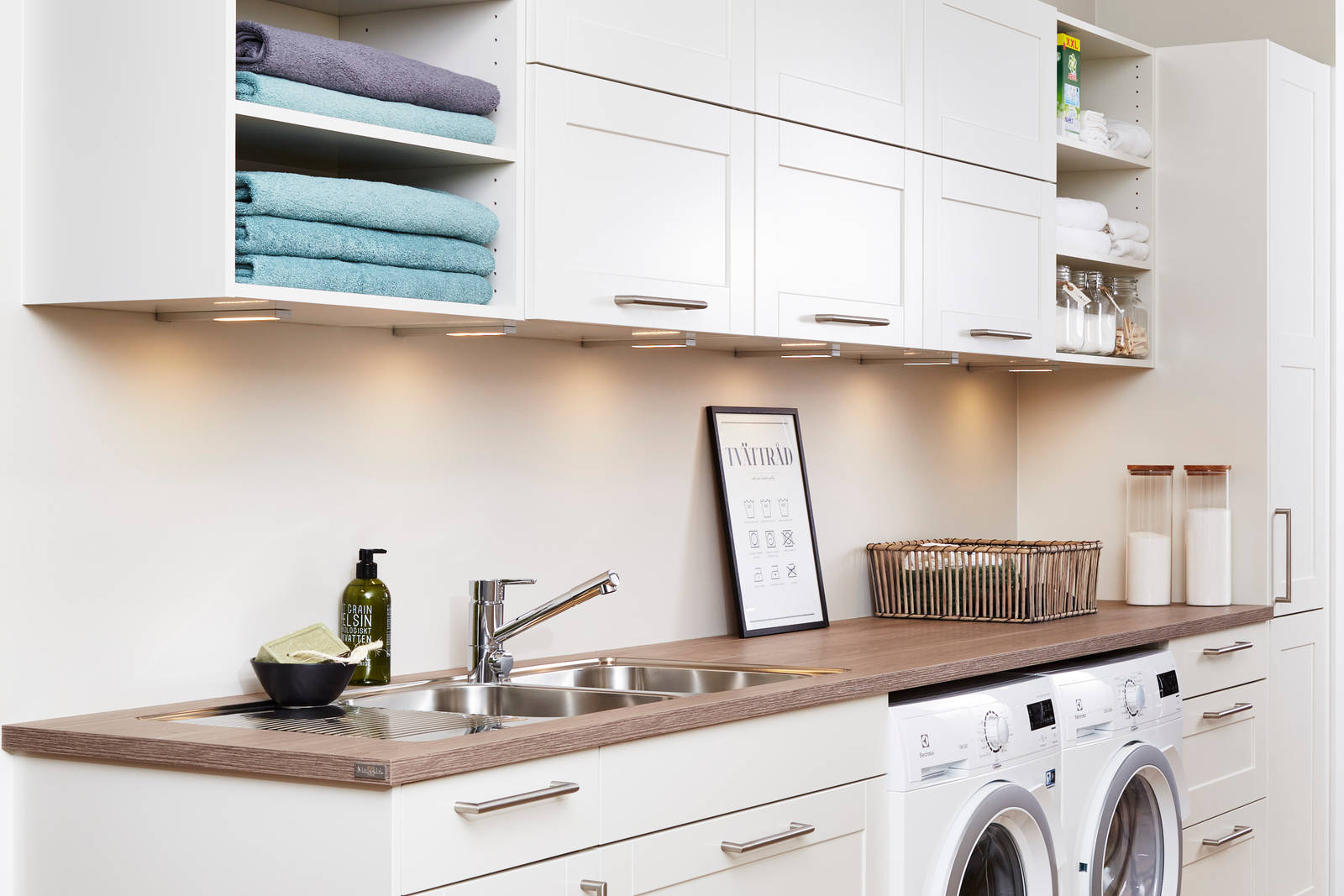 Inredningen i en tvättstuga ska både vara funktionell och inbjudande. Våra fabrikskontrollerade och monterade stommar är gjorda för att klara av flitig användning i tvättstugan. Välj mellan våra olika luckor och titta närmare på alla smarta detaljer som bidrar till effektiv och bekväm förvaring.