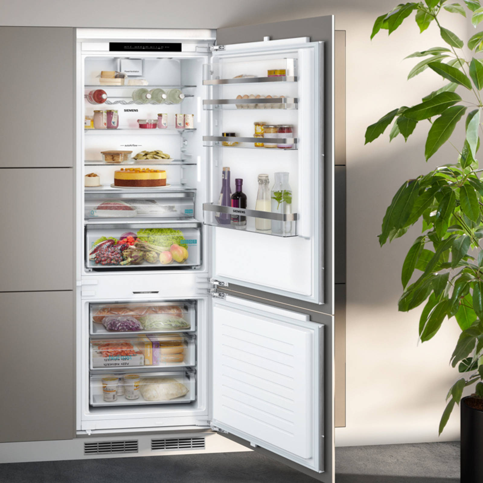 Siemens nya helintegrerade diskmaskiner har ett nytt öppningssystem. Med openAssist behövs bara ett lätt tryck på fronten för att diskmaskinen ska öppnas. Maskinen rengör och torkar din disk upp till tre gånger snabbare. Funktionen autoOpen dry gör torkningsprocessen mer skonsam, medan varioSpeed Plus ger dig möjlighet att aktivera spolning när som helst via Home Connect-appen.